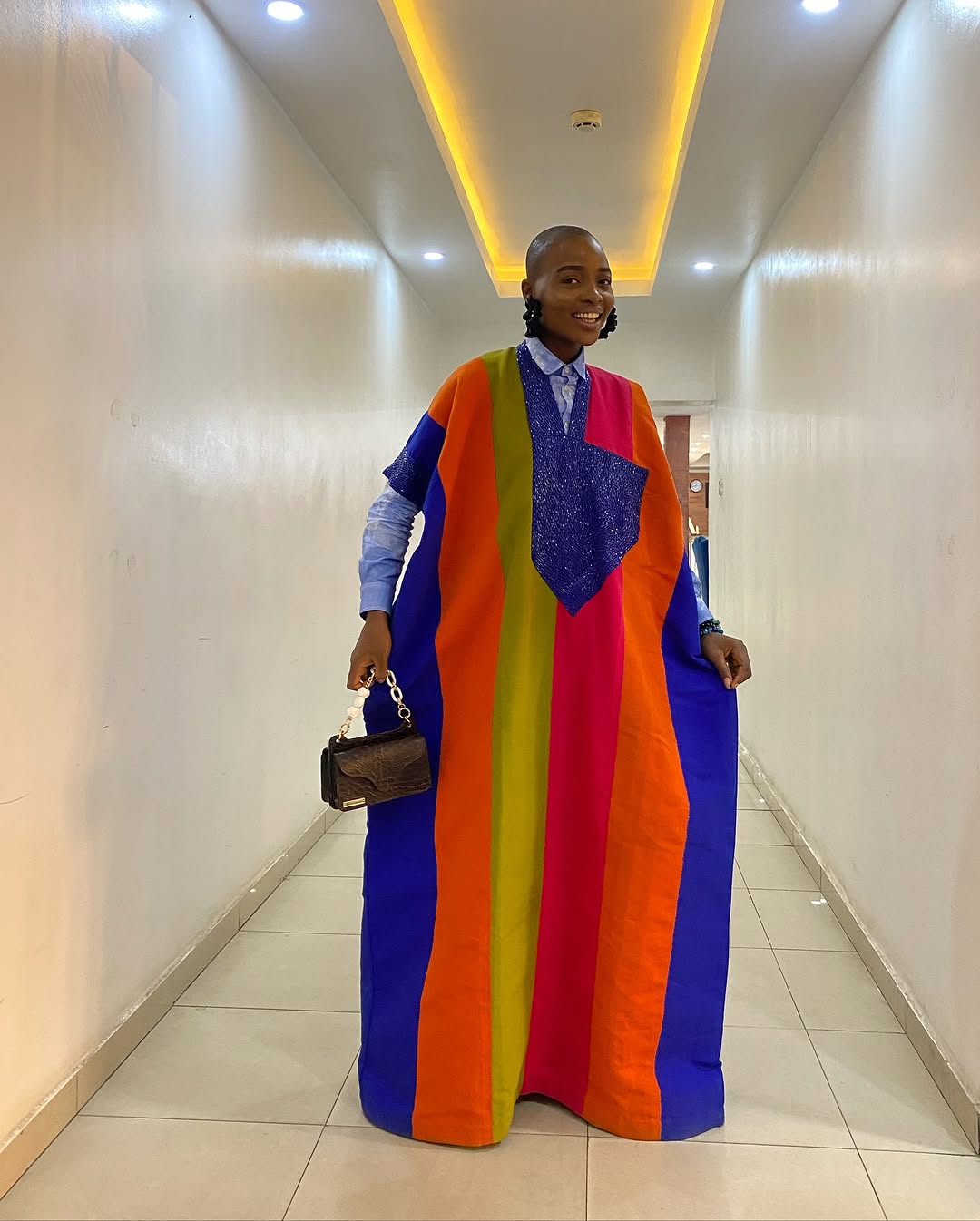 Olufolake Owodunni is big on sustainability, which forms the core of her designs while supporting local artisans, she majorly designs with aso-oke a woven high-end fabric from the western Yoruba speaking part of Nigeria and Adire a hand dyed fabric that has spanned generations and Popular in many parts of Nigeria like Osogbo, Abeokuta and the Kofa Mata dye pits in kano and this birthed the Zero Tolerance to Waste Policy at the Budding Blue Brand.