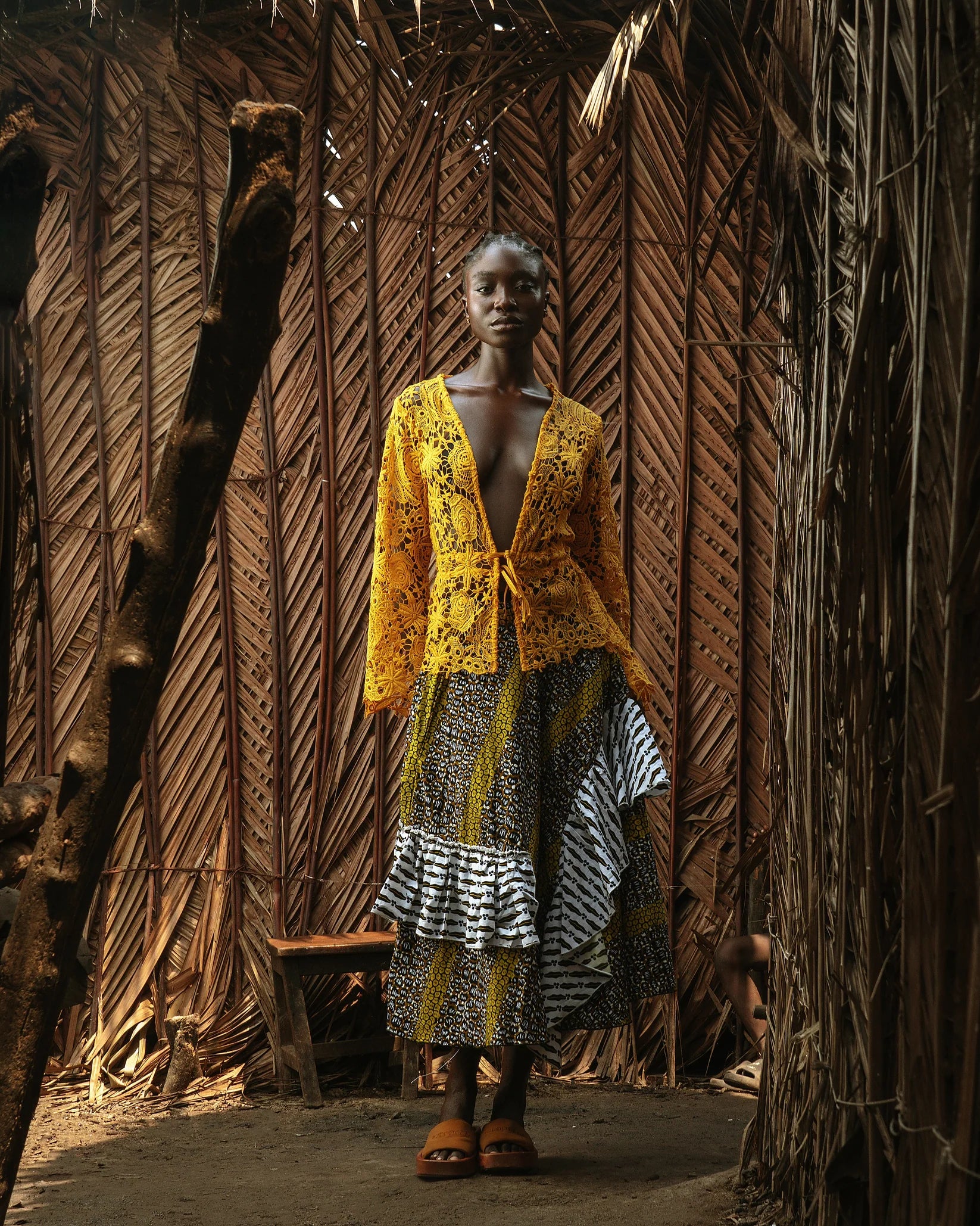 This elegant two-piece set is perfect any occasion. The lace top features deep V-Neck and delicate floral details, while the ruffled midi skirt adds a bold touch with it's vibrant print. Lightweight and breathable, it's great for casual outings, cultural events, or vacations.