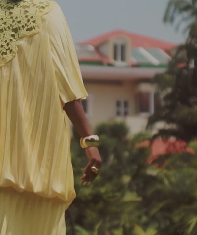 A contemporary take on the classic boubou featuring our signature miniature pleats in silk chiffon, lace and velvet ribbon neckline which alternates both front way and backwards. The semi-sheer bottom gives off a subtle sexiness while the chic midi-length makes it perfect for semi-formal occasions, date nights, dressy evenings or brunching with friends and family on a casual weekend.