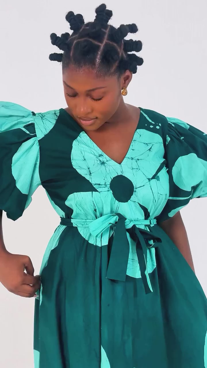 The dress is complemented by voluminous puff sleeves, adding a touch of elegance and sophistication while maintaining its relaxed vibe. Adebola Dress combines timeless fashion with modern details, making it a versatile addition to your wardrobe.