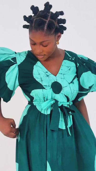 Adebola Dress is a beautiful floor-length, casual, and free-flowing dress designed for effortless style and comfort. Its standout feature is the bold hibiscus design, which brings a lively, tropical feel to the garment.