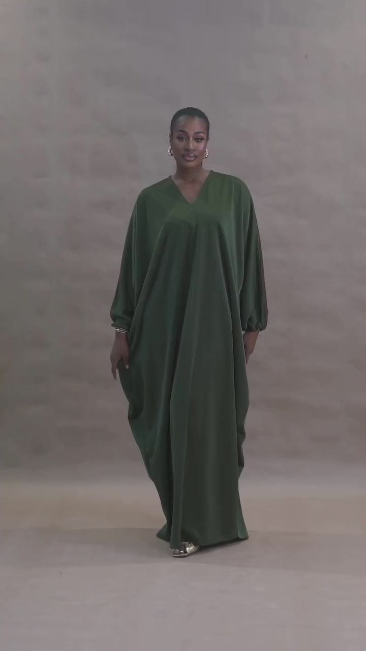 Metallic crepe bubu with a v-neck and adjustable sleeves