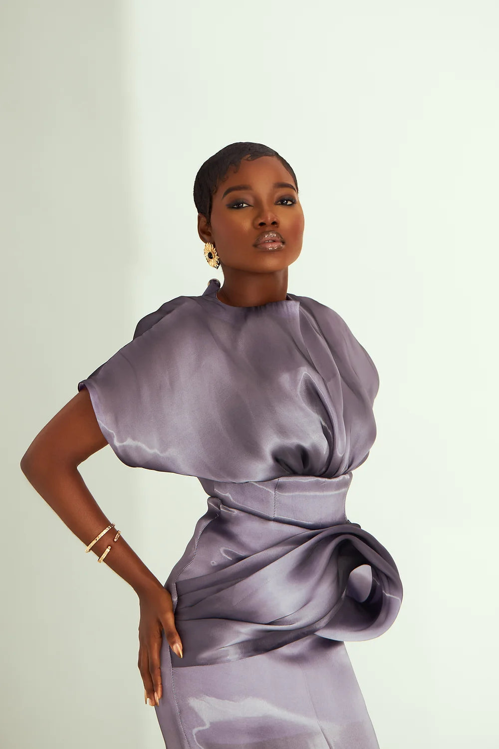 An ankle length fitted dress with gathers at the underbust and sculpted liquid organza below the waist. You'll literally look like a piece of art in the Adun dress.
